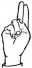На ћирилици написано АНДЈЕЛИНА РУЧНОВ састоји се из 15 слова [?]. Исписано ћириличном једноручном азбуком за глувонеме: